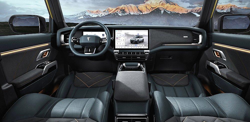 内饰方面,iCAR V27以“星舰座舱”为设计核心,将硬派格调与家庭舒适完美融合。车内采用了T型布局,大面积软质包覆搭配环保亲肤材质,质感细腻,车内最高挑空达到了1350mm,带来了极佳的开扬感。
